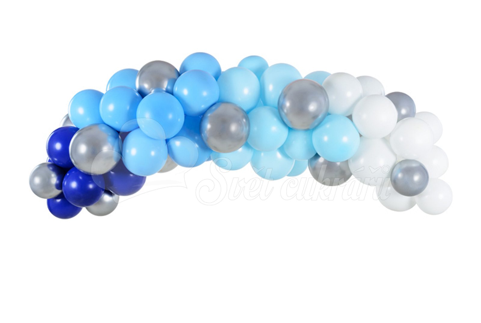 Balloon garland blue - white - silver 200 cm - 60 pcs of balloons
