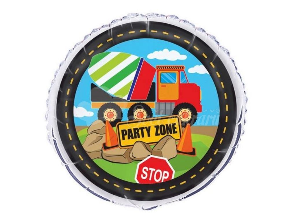 This fun foil balloon featuring a "Party Zone" design with a concrete mixer is perfect for any construction-themed celebration!
