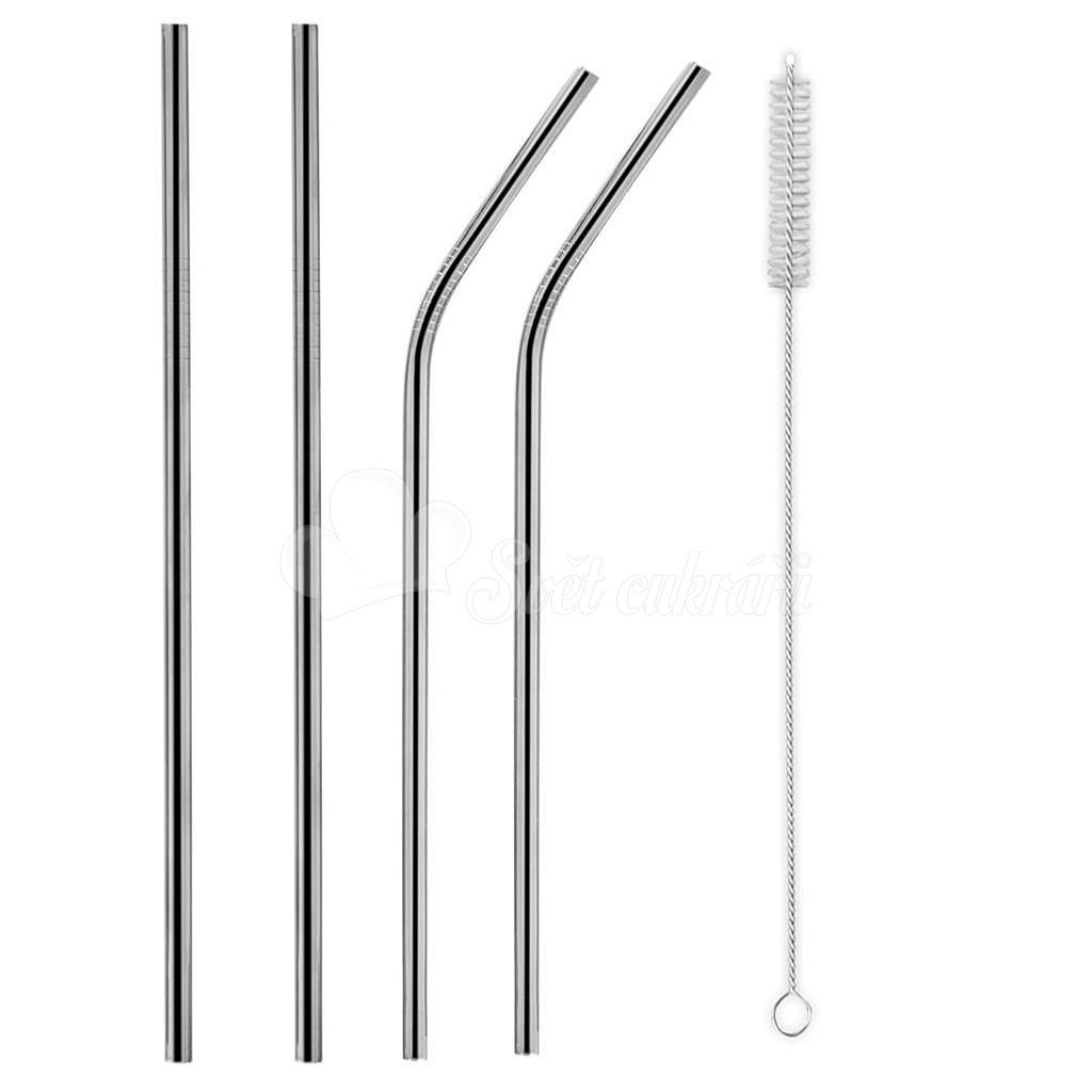 The set includes 2 straight and 2 bent straws, which are easy to clean with the included brush.