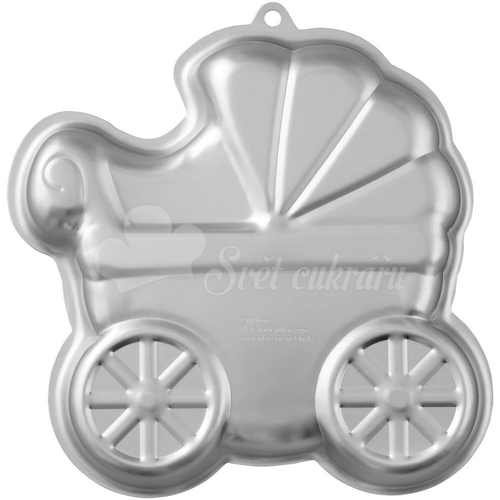 A cake tin in the shape of a Baby pram from Wilton