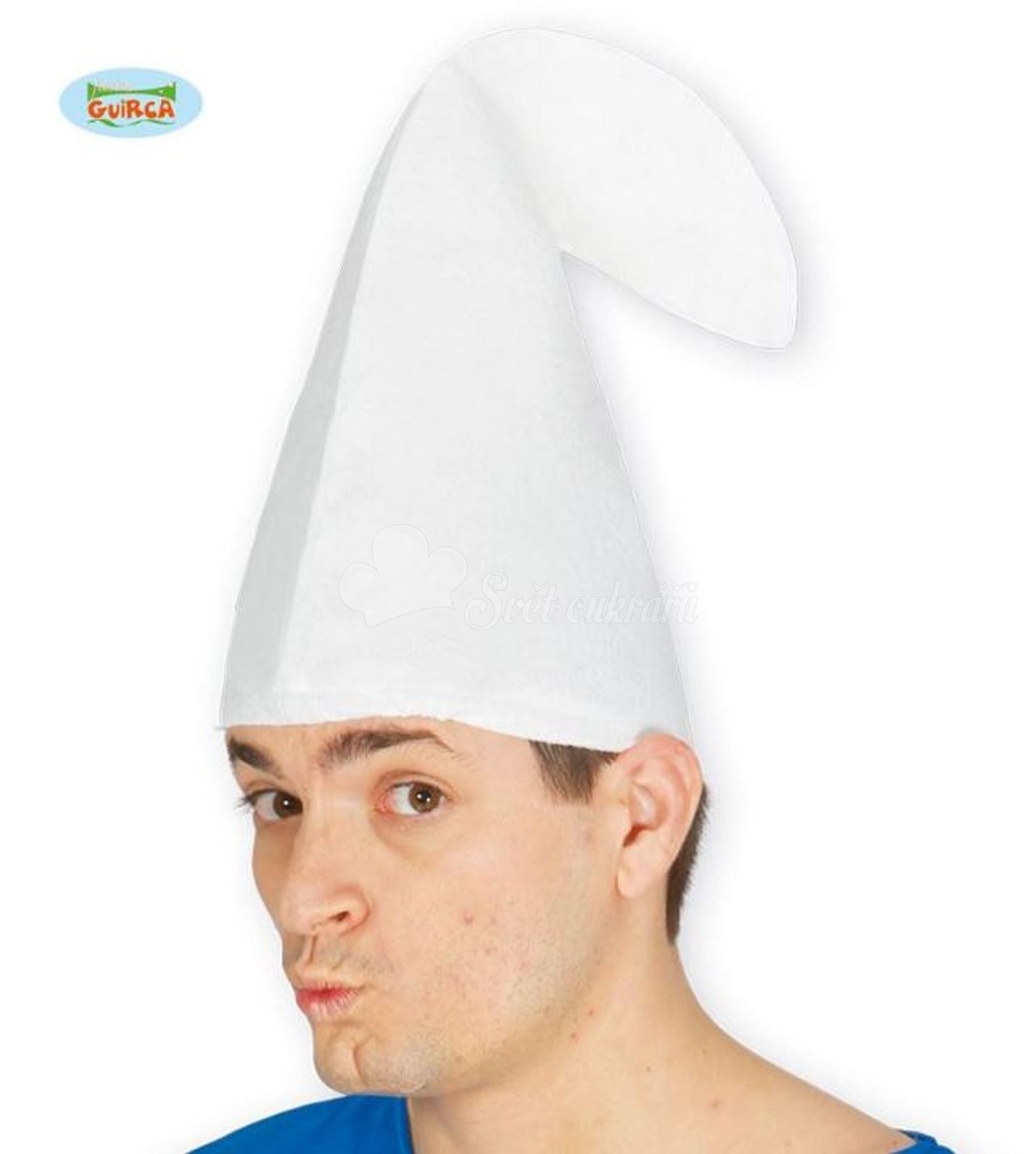 The Smurf Hat in white is a charming felt accessory perfect for completing your carnival costume or for themed parties.