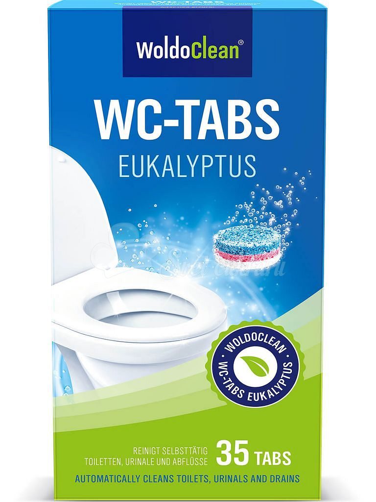 Intensive and automatic cleaning of toilets and waste pipes. Eliminates limescale, urine stains, and dirt. Protects the toilet from further dirt and unpleasant odors. Offers a hygienic eucalyptus freshness. Removes 99.9% of bacteria.