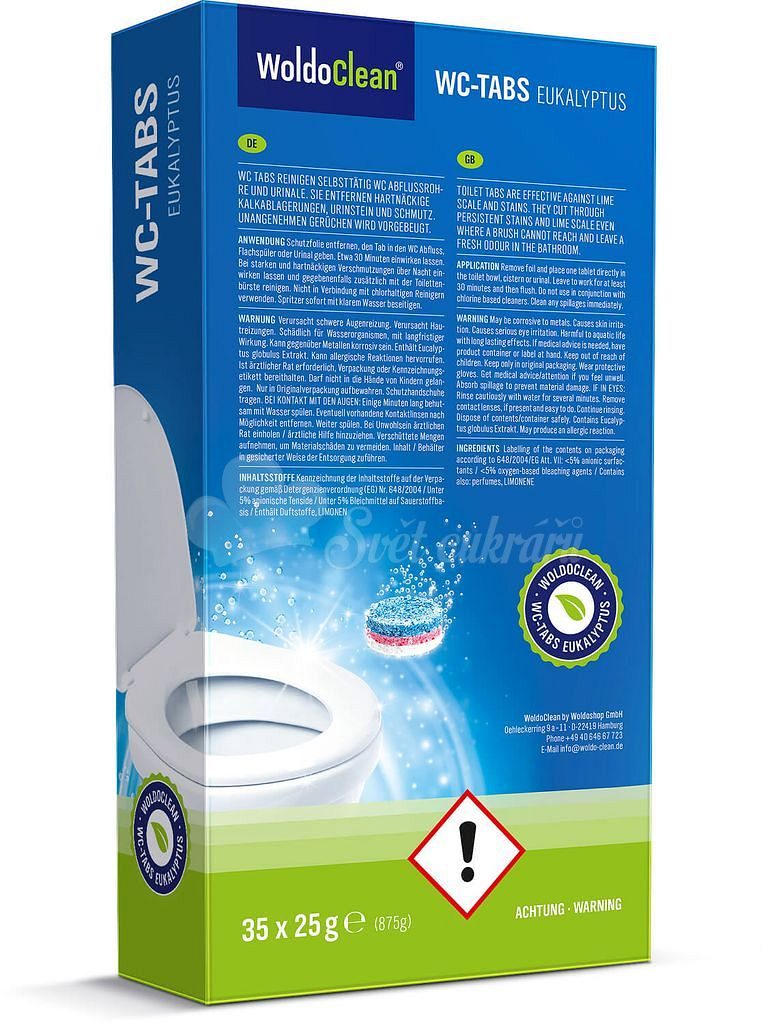 Německá značka WoldoClean je předním evropským výrobcem v oblasti čisticích prostředků. Od svého založení v roce 2007 představujeme neustále rostoucí portfolio produktů pro všechno, co se týká čištění domácnosti. Při hledání alternativ k výrobkům drahých výrobců neustále pracujeme na vylepšení produktů a přidané hodnotě pro naše zákazníky. Více než 1,1 milionu zákazníků v obchodním a soukromém sektoru zákazníků z celé Evropy. Také u ostatních čisticích prostředků se snažíme usnadnit čištění v domácnosti a kanceláři pomocí kvalitních ingrediencí. Bez ohledu na to, zda odvápňovací tablety, tekuté odvápňovací prostředky nebo jiné čisticí prostředky pro domácnost, jsou kvalita a cena přidanou hodnotou, kterou bychom chtěli nabídnout našim zákazníkům.