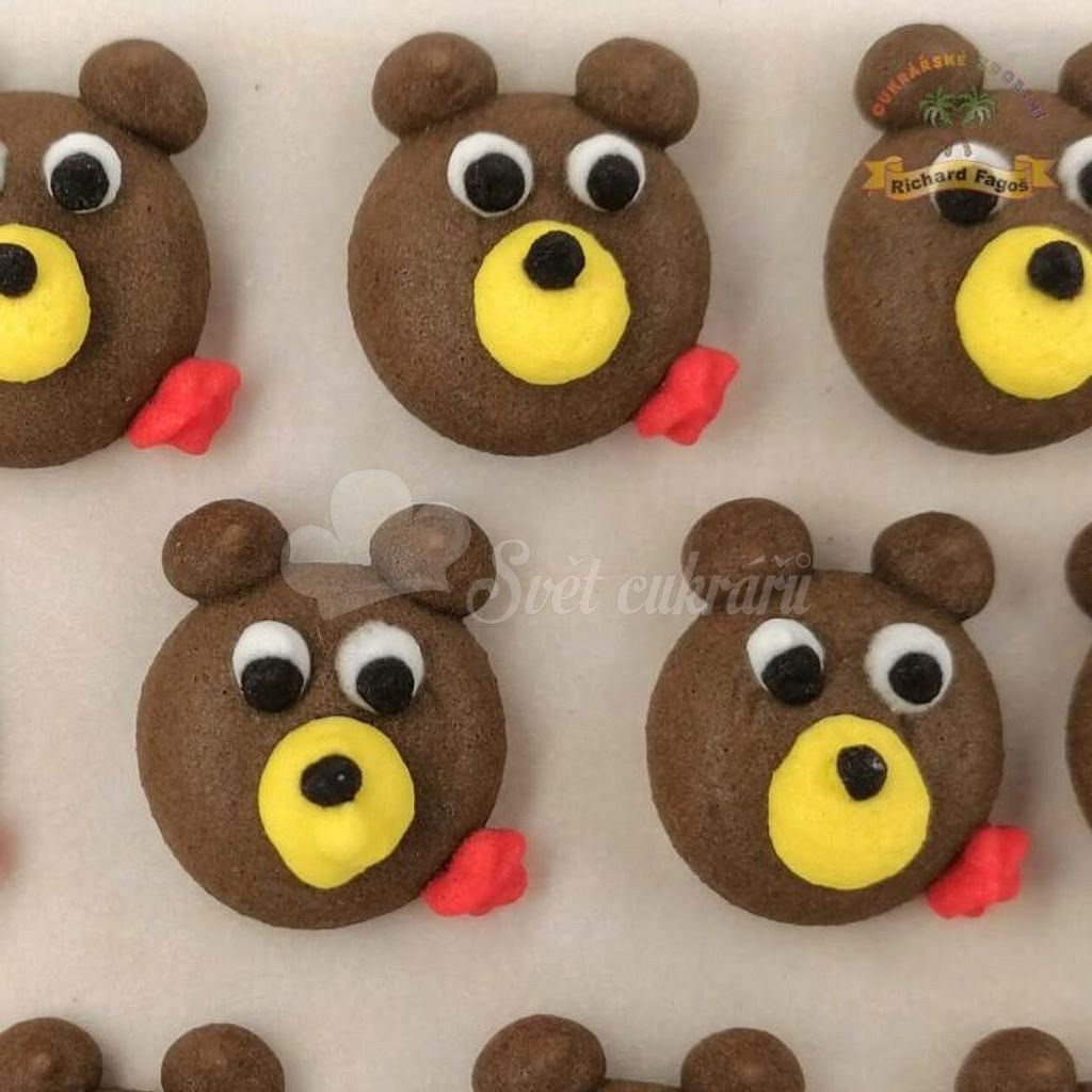 You receive 12 brown teddy bear sugar decorations on a tray.