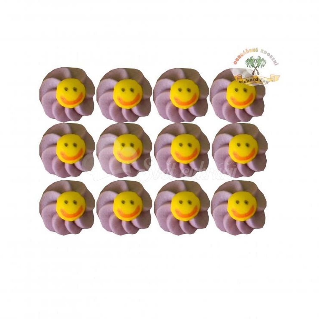 | Handmade sugar decorations shaped like a purple sun. Pack of 12 pieces on a tray; each piece approx. 2 cm. Photo is illustrative; pieces may vary slightly. |