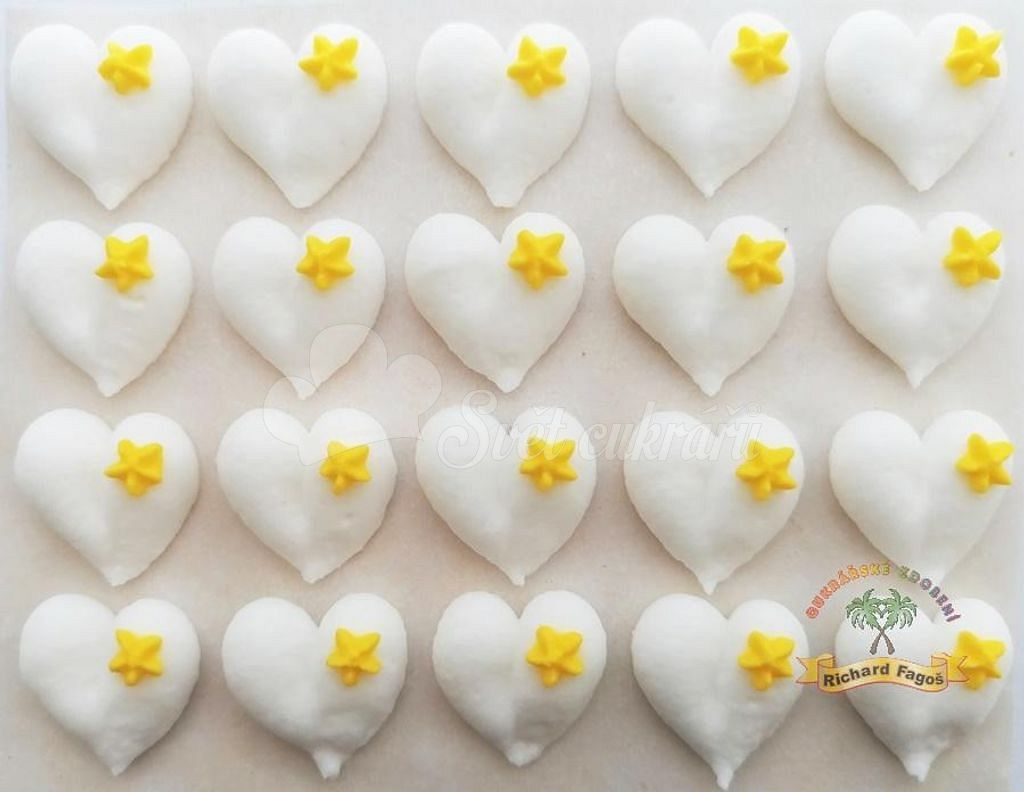 Sugar Decorations – White Hearts with Yellow Flower