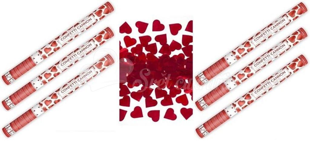 Make your wedding unforgettable with the wedding confetti featuring red hearts. This set includes 6 pieces of confetti, each 60 cm long, stored in a metal cylindrical tube. The wedding confetti is completely safe and suitable for use both indoors and outdoors, allowing you to celebrate at home or in your garden.