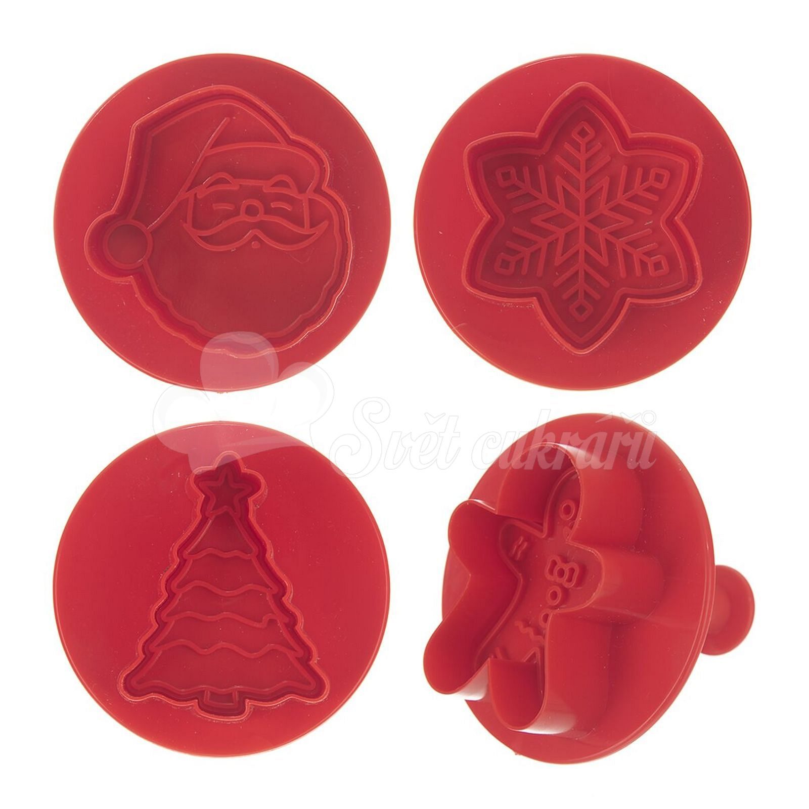 - What is included in the set? The set includes four cookie cutters with plunger mechanisms, featuring Christmas tree, snowflake, Santa Claus, and Gingerbread Man designs.