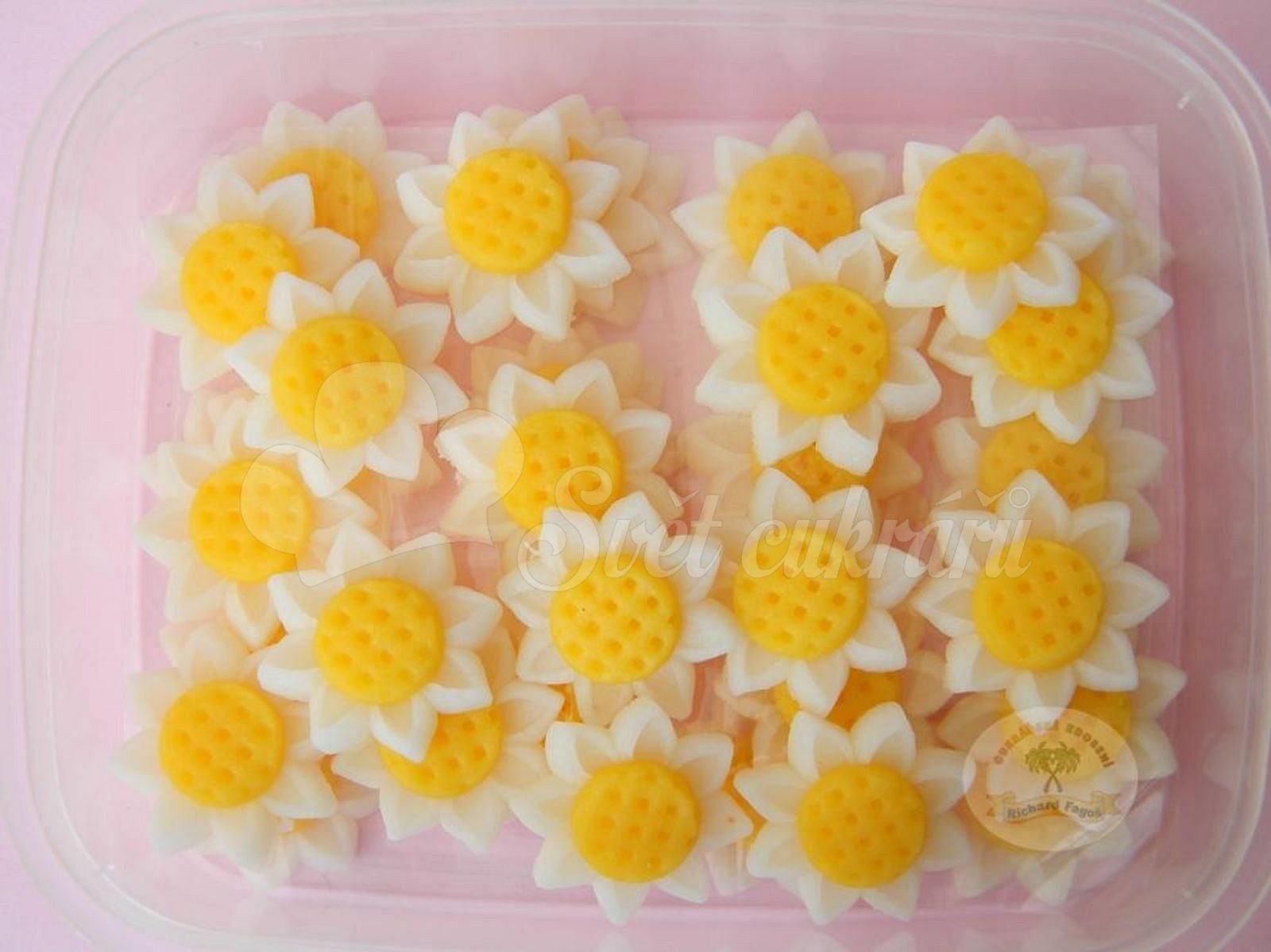 Each box contains 40 pieces, with each flower measuring approx. 2 cm – an ideal size for elegant borders, floral clusters, or a simple single-flower accent on individual treats. Because Daisies 2 (40 pcs) are handmade, every piece has its own character and may vary slightly from the photo (illustrative image).