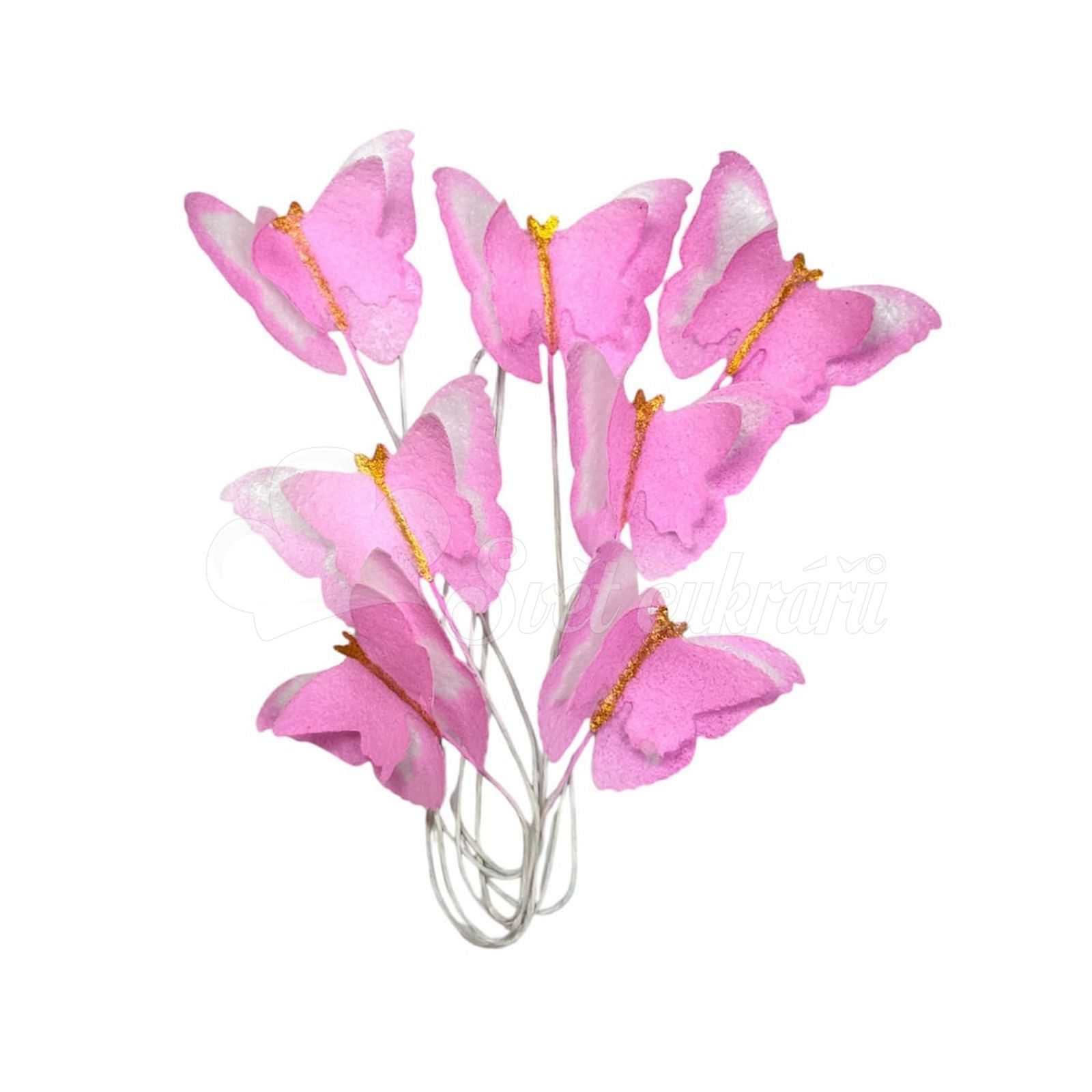 Delicate edible pink wafer butterflies perfect for decorating cakes, cupcakes, and desserts. Add a romantic and elegant touch to your sweet creations today!