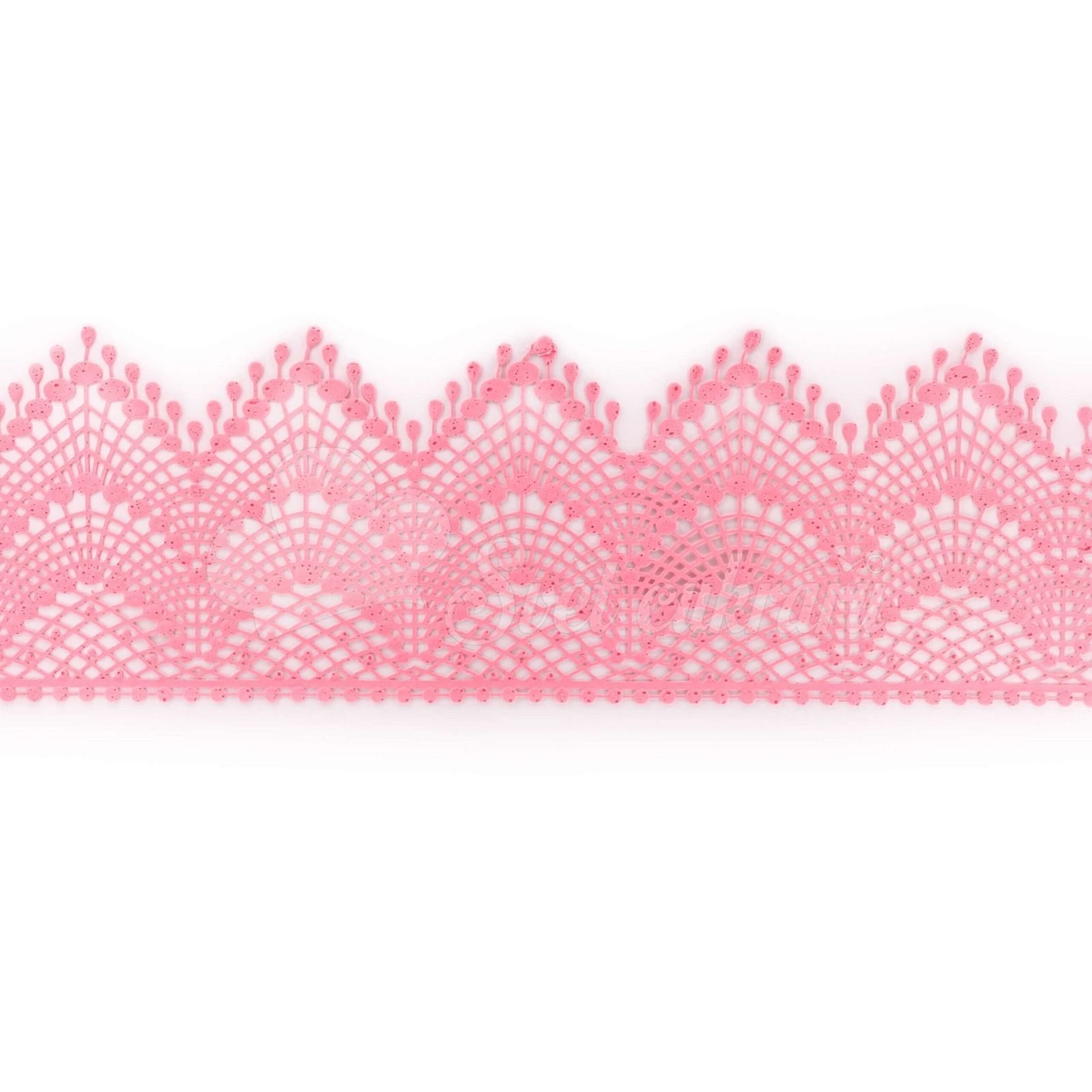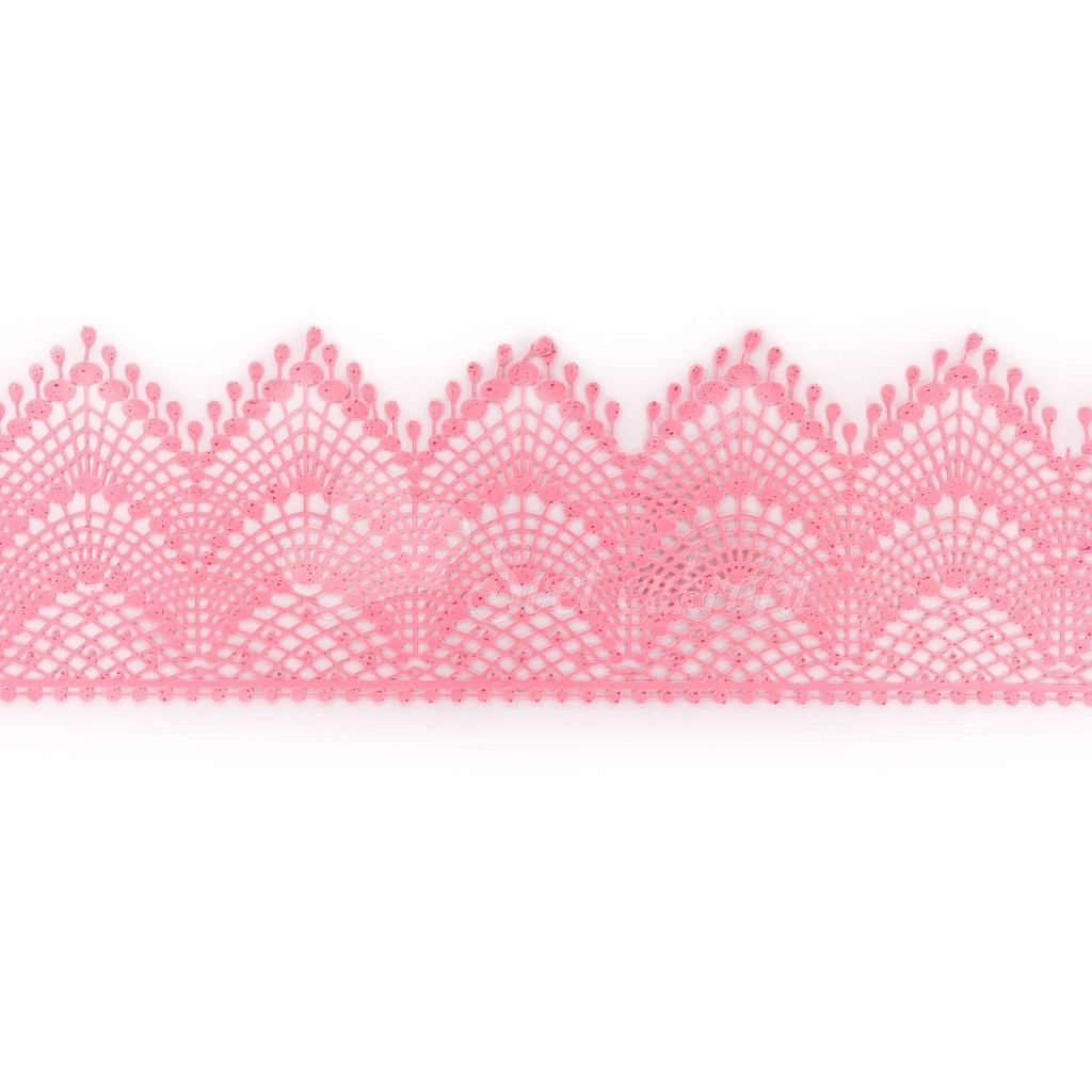 Add a touch of elegance to your cakes with this edible pink sugar lace (01). The lace measures a total of 120 cm, divided into 3 pieces × 40 cm, with a width of 8 cm. Its vibrant pink hue is perfect for creating eye-catching designs on cakes and other confectionery creations.