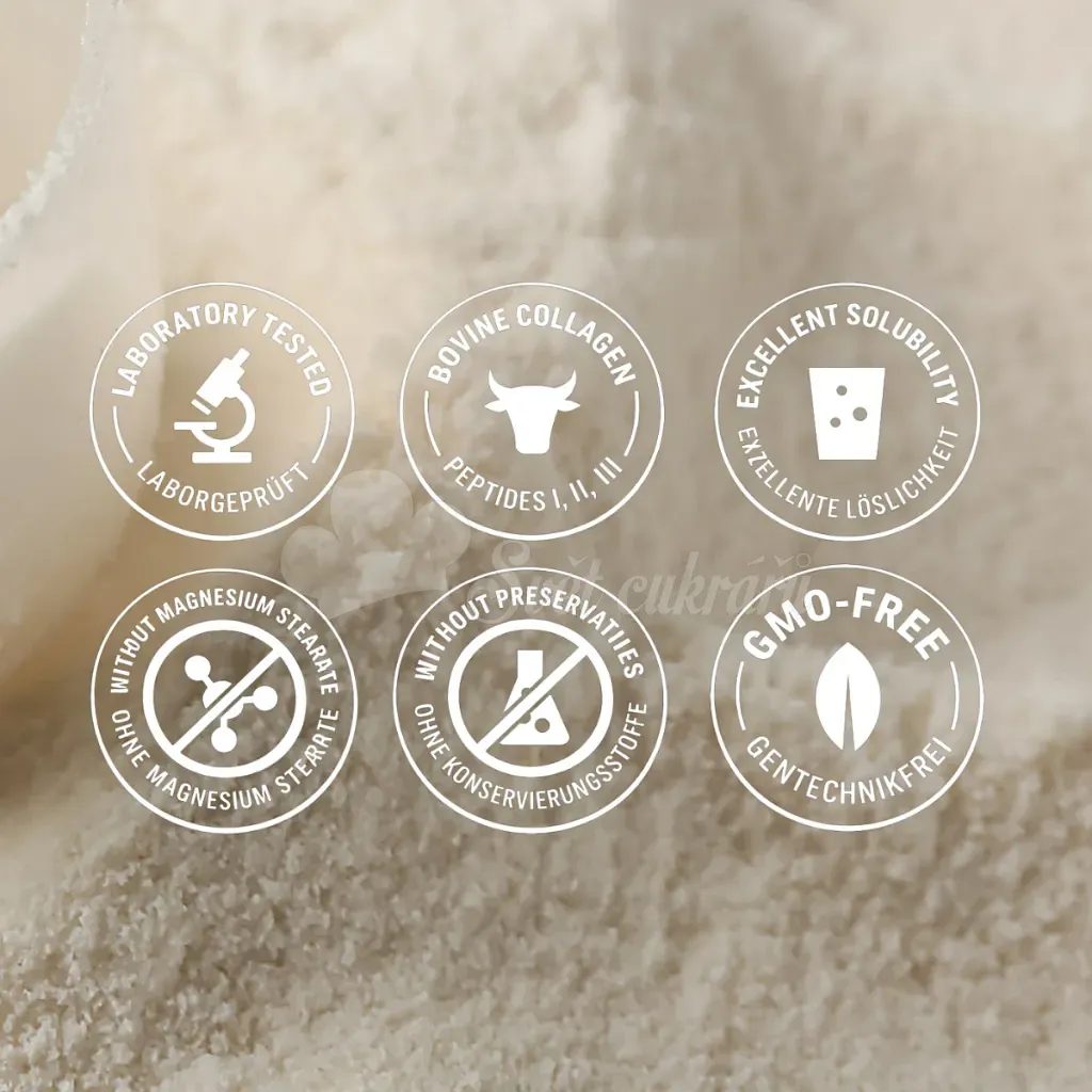 Contains all 3 types of collagen as a dietary supplement suitable for skin, hair, bones, and joints, well soluble without clumps.