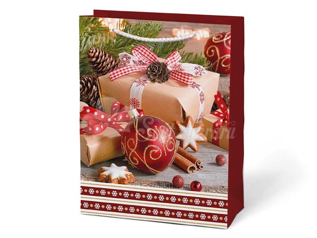 Christmas gift paper bag, ideal for gift giving, and a great help when it's hard to wrap a gift in gift wrapping paper. The bag comes with a sturdy handle. Mix of Christmas motifs. Price is for 1 piece.