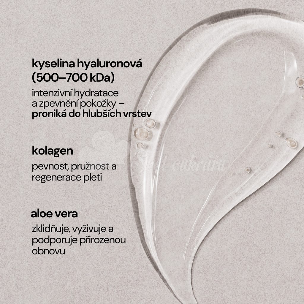 - Contains a powerful combination of hyaluronic acid (500–700 kDa), collagen, and aloe vera.