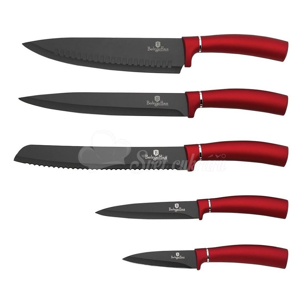 6-Piece Non-Stick Knife Set + Cutting Board Burgundy Line