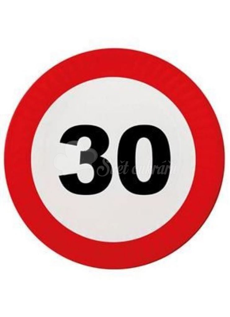 Plates featuring a traffic sign design for celebrating 30th birthdays, 8 pcs with a diameter of 23 cm.