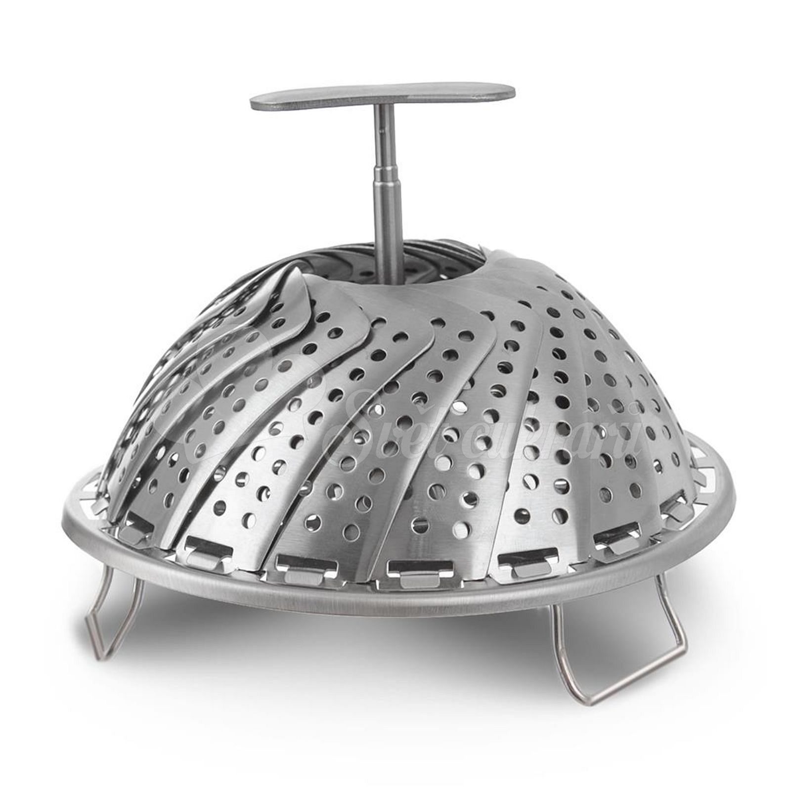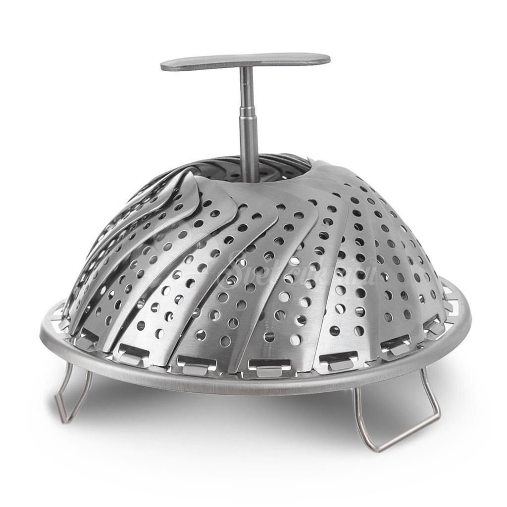 Crafted from high-quality stainless steel, this foldable steamer ensures longevity and easy maintenance. Its collapsible legs and central rod make it compact and easy to store, a feature you'll appreciate, especially in smaller kitchens.