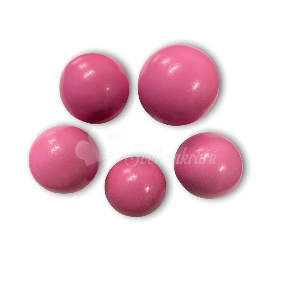 Decorative pink gelatine balls, available in a set of 5 pieces of various sizes. Perfect for creating elegant cake decorations. For decorative use only.